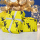 Ce papier d'emballage jaune amusant et éclatant présente un ensemble de chats noirs malicieux qui se grattent partout et qui laissent leur marque avec des rayures sauvages et insouciantes. Ils sont sûrs d'apporter un sourire à n'importe quel visage d'amoureux des chats alors qu'ils dévoilent leur cadeau. Que ce soit pour un anniversaire, un jour férié ou simplement parce que, ce papier d'emballage est le choix parfait pour toute occasion où vous voulez ajouter une dose de félin amusant.