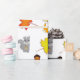 Emballage cadeau adorable pour un baby shower ou un anniversaire. Renard, raton laveur, écureuil, cerf ornent ce joli emballage cadeau à thème boisé.