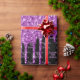 Elégant, classique, glamour et de style féminin papier d'emballage pour une fête d'anniversaire de 50ème (ou tout âge). Un arrière - plan noir chic décoré avec des gouttes de parties scintillant violet, la peinture goutte à goutte. Personnalisez et ajoutez un nom et 50 ans. Script de style manuscrit de couleur violet.