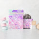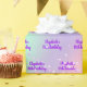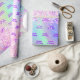 Elégant, girly, style glamour papier d'emballage cadeau de fête pour un 18ème anniversaire (ou n'importe quel âge). Un arrière - plan holographique branché aux couleurs unicorne et arc-en-ciel rose, violet, or rose, vert menthe. Décoré de faux parties scintillant rose vif. Personnalisez et ajoutez un nom et un texte. Lettres violettes.