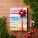 Emballage cadeau d'anniversaire dans un style coloré fantaisiste de rayures d'aquarelle en rouge, orange, jaune, violet et bleu.