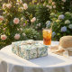 Papier Cadeau Aquarelle bleu et vert Fleurs sur blanc