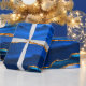 Agate Bleu Royal avec papier d'enveloppement parties scintillant or
