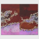 Un vent balayé numériquement altéré arbre courbé vers le sol. Avec ciel de marron et gazon lilas et rose.