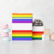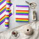 Ce papier d'emballage coloré et personnalisé comporte un motif à bandes arc-en-ciel. Les couleurs arc-en-ciel typiques, rouge, orange, jaune, vert, bleu et violet, sont imprimées dans un motif rayé sur un arrière - plan blanc solide.