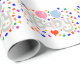 A Roll of Wrapping Paper, 29X6 Feet, =optional, Matt= paper type=optional, with a Drawing/Design, of the word Baby, in a Lighter Gray Color, with a Pink and Light Blue, Color Balloon, with Some Colorful Confetti, with a Red, Color Balloon. = (Drawing/Design by P.J.M.), =With the White Background removed.