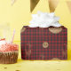 Ce papier d'emballage thématique rustique saisonnier avec un cerf et un plaid de buffalo est parfait pour la saison hivernale. Il présente un fond à plaid de buffalo rouge, une souche d'arbre avec des initiales et une illustration rustique d'un cerf.