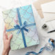 Balances de sirène Papier à envelopper bleu océan Belles échelles de sirène papier d'emballage bleu. Motif de sirène en bleu, rose et fausse parties scintillant.
