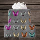 Ce rouleau de papier d'emballage est gris grinçant avec des rangées de chauves-souris éffrayantes d'Halloween avec des ailes étalées en vol dans différentes couleurs de vert, jaune, orange, bleu et rose.