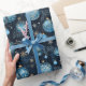 Baubles de Noël bleu intense sur un arrière - plan bleu foncé et étoiles rétro or - parfait pour l'emballage cadeau de Noël