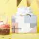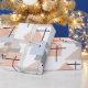 Ce papier d'emballage a une conception Bauhaus de rectangles, carrés, diamants et triangles répétés dans les couleurs de plage de bronze, gris, bleu et orange.