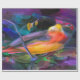 Image cool d'un oiseau coloré. Assis sur une branche d'arbre. Avec un arrière - plan abstrait cool bleu et violet. L'oiseau a des plumes multicolores à la poitrine. Avec des ailes noires. Et une queue orange et bleue.Cliquez sur le bouton Customiser pour ajouter votre propre texte ou images pour créer un design unique d'un genre! Obtenez de la créativité et utilisez ce papier à motifs amusant pour plus que juste du papier cadeau. Les possibilités sont infinies.