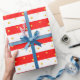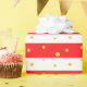 Bandes rouges et blanches avec papier cadeau pois doré.