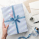 Ajoutez une touche douce et charmante à vos cadeaux avec ce papier d'emballage Bleu bébé et rayures blanches. Parfait pour les anniversaires, les baby showers, les mariages et plus encore, son design rayé classique fait que chaque cadeau a l'air délicieux et festif.