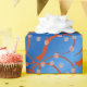 Arbres rouges sinueux de style d'aileron avec de petites spirales désinvoltes sur un arrière - plan bleu miroitant. Travaux sur toutes les tailles.
