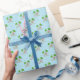 Papier Cadeau Bleu Deck Les Palms Tropical Christmas Père Noël F