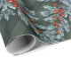 Papier Cadeau Bleu Épinette Baies Rouges Latte Forêt Vert