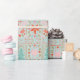 Festive Blue Christmas Pretty Holiday papier d'emballage cadeau de Noël. Rouge, blanc, rose menthe et couleurs pastel, lumineux et heureux. oiseaux de noël, coeurs, baies, étoiles. arbres de noël turquoise.