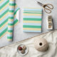 Papier Cadeau Bleu pâle, vert d'Aqua et rayures beiges