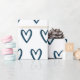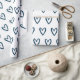 Papier Cadeau Bleu prussien sur blanc à main Coeurs enveloppant