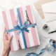 Papier Cadeau Bleu rayures roses Tour Eiffel Thème Paris