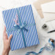 Papier Cadeau Bleu Saphir & Rayures Blanches