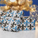 Papier Cadeau Blue Black Baroque Fleur-de-lis Pattern Design