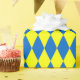 Papier Cadeau Blue Yellow Harlequin Checkered Design