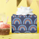 Ce papier d'emballage mignon et capricieux présente un arc-en-ciel bohème bleu et orange sur un arrière - plan bleu marine.