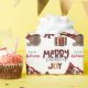 Le motif répété sur ce joli papier d'emballage de Noël est l'image d'un Chien Berger Australien rouge et blanc portant un chapeau de Père Noël, avec un coussin de buffle noir et rouge derrière lui, et un paquet cadeau coordonné avec un ruban d'or à côté de lui. Il y a aussi un arc en plaid de buffle et le texte correspondant qui dit "JOY". Stylisé rouge et noir buffle texte plaid dit MERRY CHRISTMAS", et votre propre signature est dans deux champs pour vous de customiser.