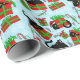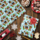 De mignons chats noirs dans ou autour des cadeaux de Noël emballés avec des flocons de neige sur fond bleu clair