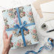 Wrapping paper with a vintage styled camera decorated with flowers. Pastel colors of pink, cream and green.