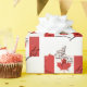 Papier d'emballage canadien patriotique montrant le MAP OUTLINE combiné avec le drapeau MAPLE LEAF du CANADA à effet gaufré. Idéal pour les fêtes nationales, les anniversaires et Noël, et pour toute occasion où du papier d'emballage patriotique et élégant est nécessaire. (L'image s'affiche correctement.)