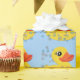 Boules bleues adorables et baby shower en caoutchouc jaune vif canard et papier cadeau de fête.