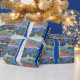 Une scène vibrante représente l'eau bleue vive qui traverse un paysage verdoyant, avec une petite cascade qui descend en cascade au centre. Les environs comprennent un feuillage dense et une parcelle flottante d'herbe dans l'eau.