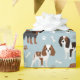 Cute Cavalier King Charles Spaniel avec des manteaux noirs, bruns et blancs avec des os de chien éparpillés et des motif de pawprints.