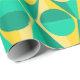 Ce papier d'emballage a un design art déco de cercles jaunes et verts à deux tons à l'intérieur de triangles jaunes et verts à deux tons.