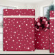 Un papier d'emballage rouge cerise chaud et douillet avec du papier d'emballage blanc en chute de neige Noël.