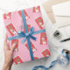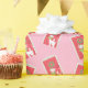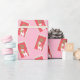 Un adorable chat blanc et une souris ludique, ornés d'une tenue festive, sont remplis de joie de vacances sur ce joli papier rose.