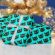 Papier Cadeau Chat noir avec les yeux verts sur bleu turquoise