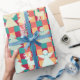 Papier Cadeau Checkered pattern with angels, reindeers and trees