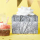 Des branches couvertes de neige remplissent la photographie ce qui en fait presque une abstraction. Au premier plan, un tronc de chêne foncé se divise en plusieurs membres, à partir du bas à gauche du cadre, pour atteindre et traverser à droite. Le tronc noir proche fournit un élément graphique à l'image. Le chêne a encore quelques feuilles marrons. Le ciel de l'arrière - plan est blanc. Une scène hivernale chaotique et intrigante. Photo numérique, couleur. Copyright © Claire E. Skinner. Tous droits réservés.