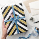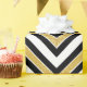Un papier d'emballage élégant à motif Chevron or, blanc et noir pour tout type de cadeau occasionnel