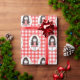 Jolie figurine en bâton avec cheveux longs foncés et marguerites sur rouge et blanc en vichy arrière - plan. Elle porte des baskets, en vichy robe et un collier de perles.