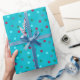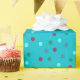 Colorful dots on a bluish background. Wrap a gift in dots.