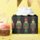 Delightful traditional Christmas nutcrackers of various types and colors on a black background. Beautiful holiday wrapping paper.