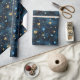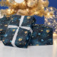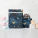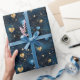 Papier Cadeau Coeurs cosmiques élégants en bleu et or