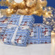Le papier d'emballage mignon a un Frosty the Snowman Blue Quilt Design.