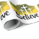 Croyez le papier enveloppant, ce dessin chrétien de Pâques comporte trois croix avec le mot "Croire". Un grand signe évangélique ou un message évangélique design pour tout événement de Pâques ou d'évènement religieux.