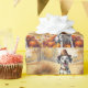 Un tableau aquarelle d'un chien gai assis au milieu d'un tas de feuilles d'automne vibrantes, entouré de minuscules citrouilles et de glands épars. Le chien porte un petit casquette pèlerin et des poutres de joie, capturant l'esprit de Thanksgiving. Dans l'arrière - plan, les champs de moissons et les arbres dorés créent une ambiance campagnarde paisible. Des textures douces et des tons d'automne chauds et feutrés confèrent à la scène une atmosphère cosy et nostalgique parfaite pour célébrer la beauté de la saison.